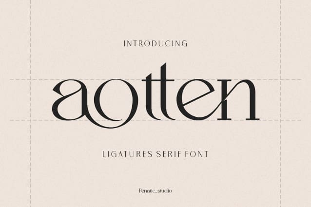 Aotten Font – Ligatures serif font. Modern and elegant Serif font, lots of binders and alternative fonts. This will be an option to use in your project. Easy to use and very suitable for all your work in arranging letters. As in branding, logos, invitations, masterheads and more.