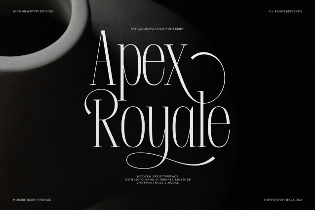 This font is used only for demos (Demo license). If you want to use this font for commercial use please contact: https://gracetypestudio.com/apex-royale-modern-serif/