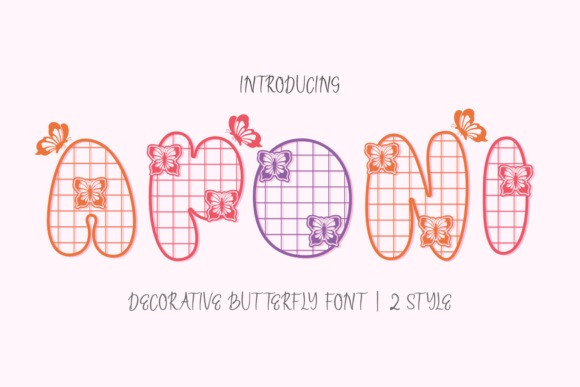 Aponi Display Font is a whimsical and charming decorative font that brings the beauty of nature to your typography. Inspired by the graceful flight of butterflies, this font features two delightful styles: a playful outline version with a delicate grid pattern, and a bold, solid version for a more impactful statement.