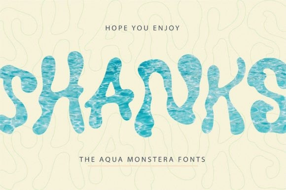 Aqua Monstera Font A font that brings the mesmerizing fluidity of water to the world of typography. Organic and dynamic shapes evoke the playful dance of water drops.This product is part of Creative Fabrica’s free font collection.