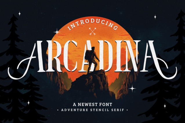 Arcadina Font is an adventurous stencil serif font that combines bold elegance with rugged charm. Inspired by vintage travel posters and expedition-style typography, Arcadina features cut-out stencil details, sharp serifs, and dynamic letterforms that bring a spirit of exploration to your designs. Perfect for headlines, logos, posters, book covers, and packaging, this typeface is designed to make a strong, stylish impression. Arcadina is ideal for creatives looking to evoke a sense of bold discovery and classic sophistication in their work.