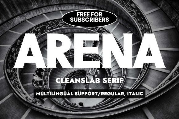 Arena Typeface is a bold and elegant slab serif font. Incredibly versatile, this font is suitable for a wide range of creative ideas.