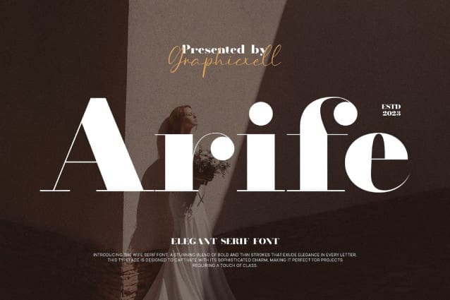 Arife Font is a unique and very elegant font for branding and logo designs Elegant serif typeface combined with a classy and modern style. This type of font is very suitable for your various needs such as branding projects, logos, wedding designs, social media posts, advertisements, product packaging, product designs, labels, photography, watermarks, invitations, stationery, and any project, created with high level of readability. you will not be disappointed if you buy this font!!