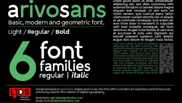 Arivo Sans presents 6 styles: Light, Regular and Bold, accompanied by their versions in Italic. It features clean lines, balanced proportions, and straightforward geometric shapes. The letterforms are crafted to ensure readability and clarity, while the simplicity of the design allows for seamless integration into a wide range of projects.