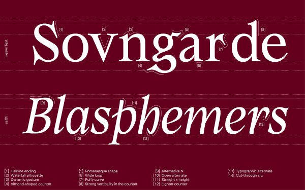 Armag Font Family, Inspired by early 20th century hand drawing, Armag is a family of two fonts (Fury & Fury Italic) with aggressive and evilish looking endings and, yet, generous organic shapes. This 20th century serif font has numerous alternates and ligatures, making it a sharp tool allowing more experimentation in any kind of design project. The old fashioned print style give Armag an almost biblical appearance, represented by the evilness of its horned letterform. We are also working on expanding the Armag font-family with various weights, widths and, of course, alternates & ligatures.
