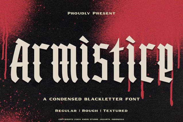 This font is an excellent choice for those who want to blend the old-world charm of blackletter with the practicality of modern typography. Bring a piece of history to your designs. Enhance your typography with Armistice Condensed Blackletter.