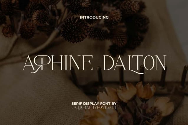 Arphine Dalton Font is a beautiful serif display font designed for those who seek sophistication and elegance in every detail. Crafted with luxury in mind, its graceful curves and subtle shapes provide a timeless appeal that elevates any design. Ideal for upscale projects such as blogs, brochure, greeting card, headers, label, logos, menu, mockup, packaging, poster, signage, stickers, template, titles, websites, and more.