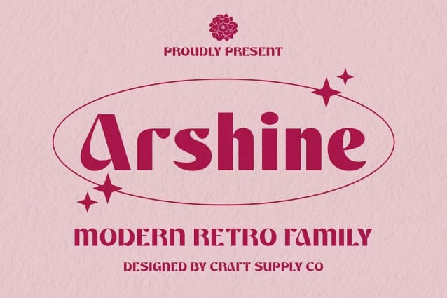 Arshine Display Font: Bold and Funky Retro Vibes.Bold Sans Serif Design Arshine boasts a bold sans serif design that grabs attention and makes a statement in any project. Its strong, assertive characters demand to be noticed.