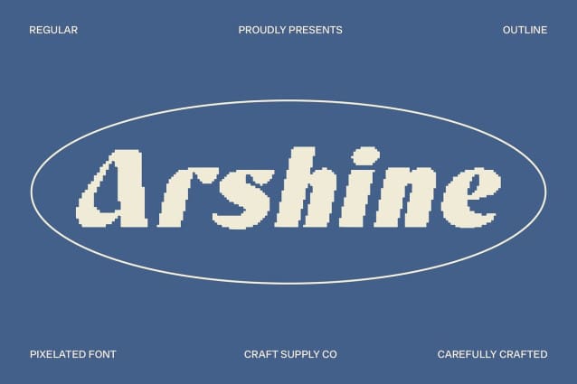Versatile and visually striking, Arshine Pixel adapts seamlessly to various creative projects, including product packaging and promotional materials. Whether used in digital or print media, this font provides a captivating and retro-inspired appeal that enhances the overall impact of your designs.