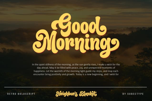 This font is made for personal use. Get the full version of the fonts if you want to use it for commercial purposes by purchasing the licenses here: https://subectype.com/product/neighbors-blanket-modern-vintage-font/