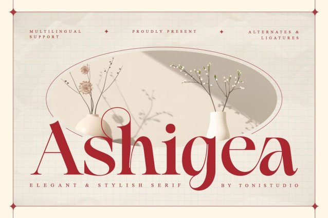 Available in OTF, TTF, and WOFF formats, Ashigea ensures smooth usability across design software and websites. Whether for a professional logo, high-end magazine, or wedding stationery, this versatile serif font delivers a premium and classy impression for your creative projects.