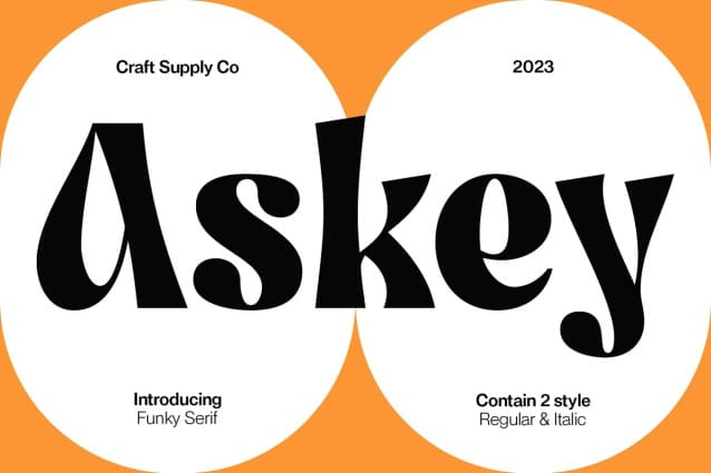 Askey Font – The Funky Serif Font is a bold and expressive typeface that channels the spirit of funk and creativity. With its unique and unconventional serifs, Askey Font exudes a sense of artistic flair and individuality.