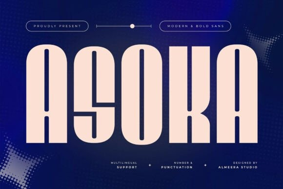Asoka Sans Font is a modern, bold sans font that brings strength and clarity to your designs. With its tall proportions and geometric structure, Asoka is perfect for impactful headlines, branding, posters, packaging, and digital campaigns. Its contemporary style blends minimalism with authority, ensuring your message always captures attention.