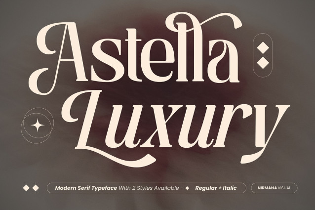 Astella Luxury Font is a refined serif display typeface crafted for elegant logo design, premium branding, and high-end visual identity. Designed with graceful proportions and sharp contrast, Astella brings a sophisticated presence to fashion labels, jewelry brands, beauty products, and editorial layouts. It comes with regular and italic styles, enriched with beautiful ligatures that enhance its luxurious character. Perfect for creating timeless, classy, and exclusive brand impressions.