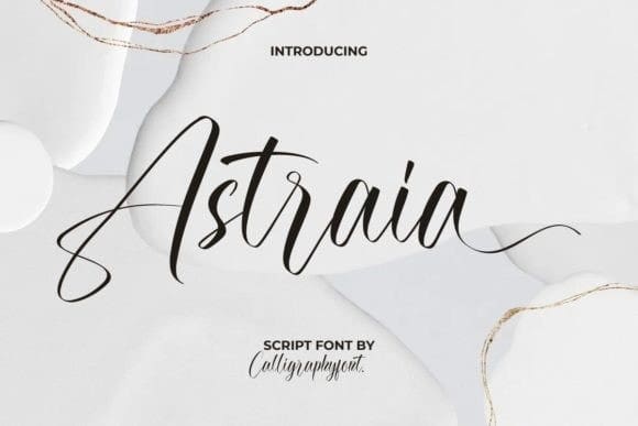Astraia Font is an elegant calligraphy script font with a modern look. It can enhance various creative projects, such as brand logos, brochures, business cards, catalogs, menu flyers, quotes, signage, stationery, websites, and other projects that require a touch of awesome scripting.