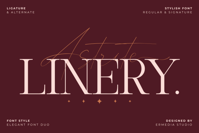 Introducing Astrite Linery is an elegant serif font combined with a handwritten script font that will add elegance and style to your designs. This duo font delivers a classy and elegant aesthetic, making it perfect for headlines, logos, covers, posters, quotes, magazines, wedding invitations, product packaging, social media, marketing materials, and more.