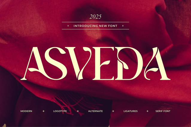 Asveda Font is a modern and classy font type for all branding and logo designs. This modern and classy Serif font has a beautiful character. This font is suitable for invitation card designs, cool logos, movie titles, movie names, business cards, book titles, brand names, and various other designs. Asveda Serif is a smooth serif font that exudes sophistication and the moment. Its stylish ligatures make this font a perfect partner for any project.