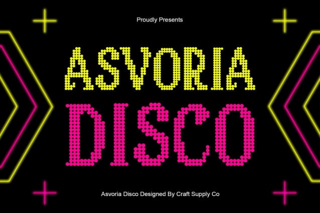 Asvoria Disco Font is used only for demos (Demo license). If you want to use this font for commercial use please contact: https://creativemarket.com/craftsupplyco/174309803-Asvoria-Disco?u=fontlot123