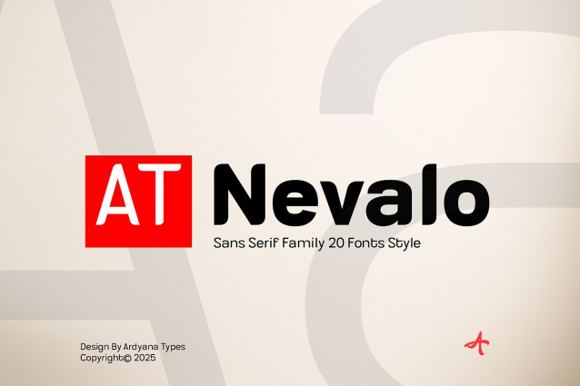 AT Nevalo is a modern and highly versatile sans serif font family featuring 20 carefully crafted styles, ranging from Thin to Extra Black—including matching italics. Designed with clarity and functionality in mind, AT.Nevalo offers a perfect balance between minimalist elegance and bold impact.