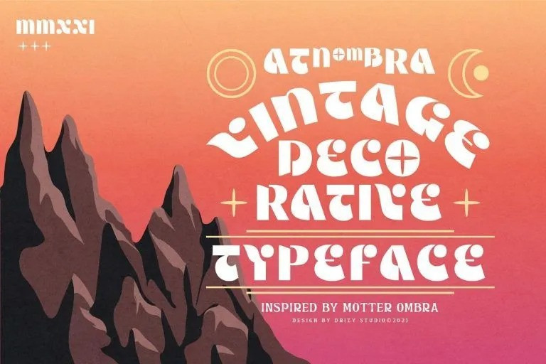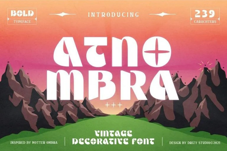 Atnombra Font is a vintage decorative font. Great for creating eye-catching headlines and applicable for any type of graphic design web, print, motion graphics, perfect for t-shirts and other items like logos, poster/ flyer, branding, packaging, etc.