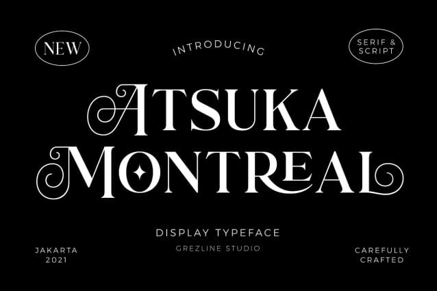 Atsuka Montreal Font is a display font family with elegance and luxury aesthetic. It’s a perfect use for any fashion design project. This font is accompanied by signature script to make your creation be more appealing and beautiful.