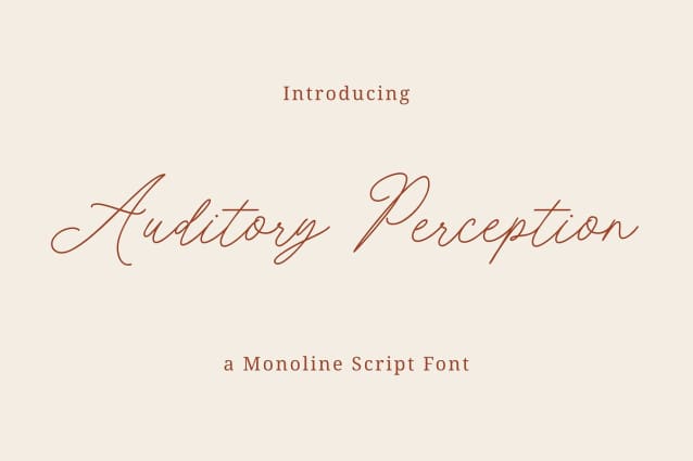 Auditory Perception Font is a monoline and handwritten font. AuditoryPerception have a fashion and simple curves to add charm impression for your design. This font is perfect for many design needs such as merch, T-shirts, signature logo, wedding, book covers, social media posts, websites, events, and many more.