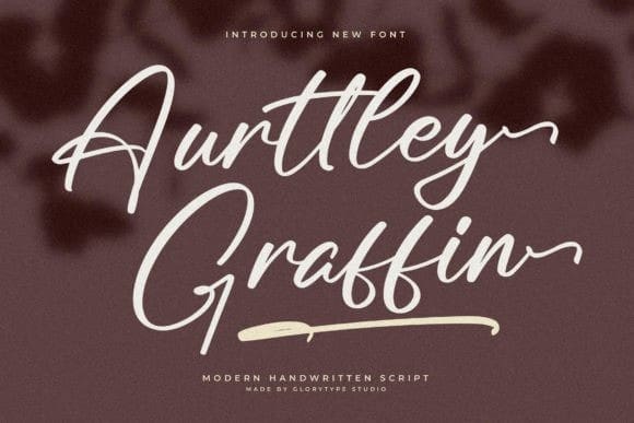 Aurttley Graffin Font – Modern Handwritten Script, from Glorytype Studio, suitable for any projects such as logos, branding projects, homeware designs, product packaging, mugs, quotes, posters, shopping bags, t-shirts, book covers, name cards, invitation cards, greeting cards, label, photography, watermark, special events, and all your other lovely projects that need a beautiful script taste.