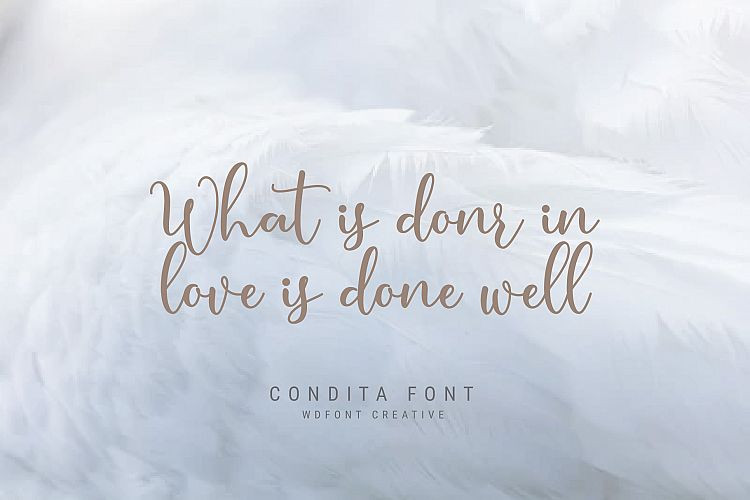 Condita Calligraphy Font by WD font 11,962 downloads Found in: Calligraphy Fonts, Script Fonts Condita Calligraphy Font
