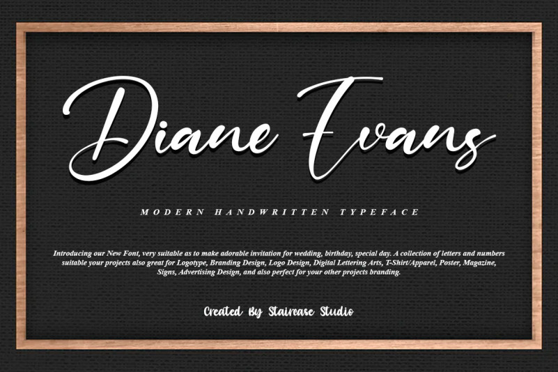 Diane Evans Script Font by Diane Evans 11,394 downloads Found in: Calligraphy Fonts, Handwritten Fonts, Script Fonts Diane Evans Script Font
