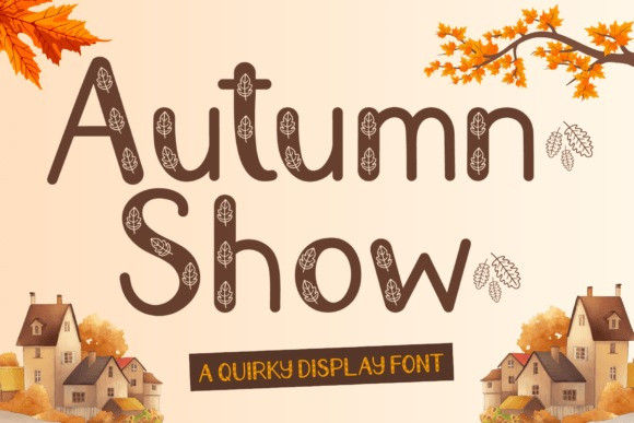 Autumn Show Font, a quirky and fun decorative display font designed especially for fall-inspired projects. With its playful charm, this font captures the coziness of autumn days, from pumpkin patches and falling leaves to the laughter of Halloween parties and family gatherings at Thanksgiving.