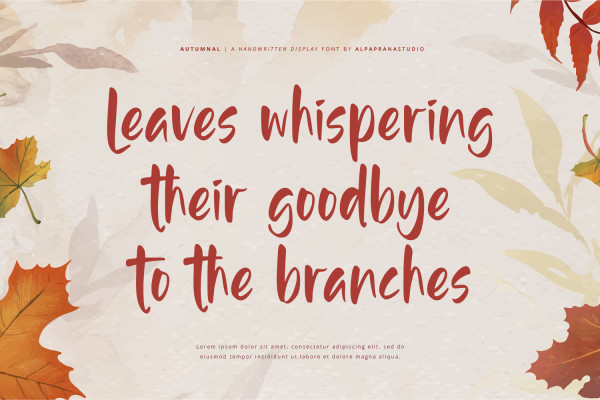 Autumnal Font is a handwritten font with modern feels. Autumnal Font will be perfectly used for Branding, Logo Design, Lettering, Logotype, Clothing, Poster, magazine, packaging, posters, shopping bags, t-shirts, book covers, photography, special events and other design project.