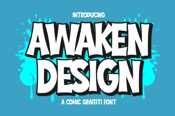 Awaken Design Font is a bold and energetic comic graffiti font crafted to bring a playful urban vibe to any project. Its chunky letterforms with exaggerated curves and sharp edges mimic the expressive strokes of street art while keeping a polished comic-book appeal. The font exudes fun, creativity, and confidence, making it ideal for posters, branding, children’s content, apparel, games, and designs that demand attention with personality and flair.