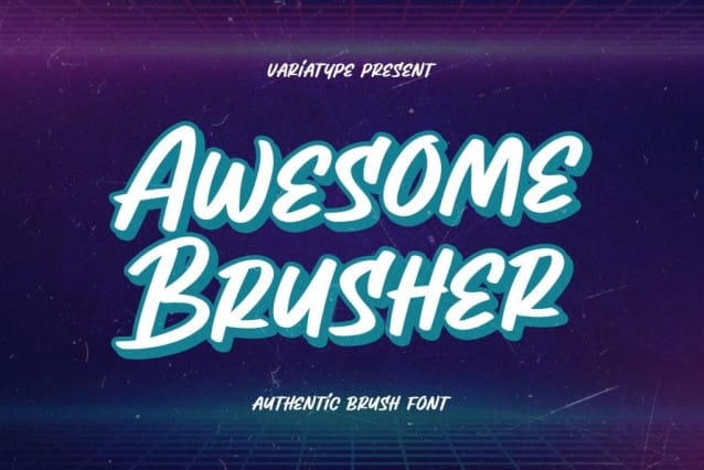 Awesome Brusher Font the iconic street brush font that is designed for headline use, printed on t-shirts, hoodies, packaging, poster, advertisement, branding, and much more. Perfectly match your design project with an urban or street-style theme.