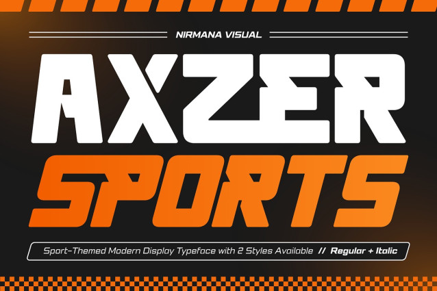 Axzer Sports Font is a high-octane display font engineered for speed and dominance. Its bold, italicized construction features an aggressive forward lean that captures the raw energy of the finish line, making it perfect for high-impact branding. With sharp terminals and heavy geometric weight, it is the ultimate choice for racing logos, motorcycle decals, automotive signage, and gritty sports posters. Whether it’s on a jersey or a car wrap, Axzer Sports commands attention and delivers a look of pure, unstoppable velocity.