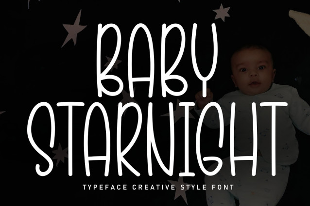 Baby Starnight Script Font A popular and professional script font. Modern and elegant, this typeface is made of beautiful creative strokes.This font is perfect for your creative ideas, both formal and informal. It has a modern style with a touch of creative ideas that is very suitable to be applied anywhere that requires creative ideas such as invitation cards,letterheads, website logos, social media, banners, advertisements, brochures, packaging products, leather products, and any product that requires writing.