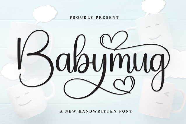 Babymug Script Font A popular and professional script font. Modern and elegant, this typeface is made of beautiful creative strokes.This font is perfect for your creative ideas, both formal and informal. It has a modern style with a touch of creative ideas that is very suitable to be applied anywhere that requires creative ideas such as invitation cards,letterheads, website logos, social media, banners, advertisements, brochures, packaging products, leather products, and any product that requires writing.