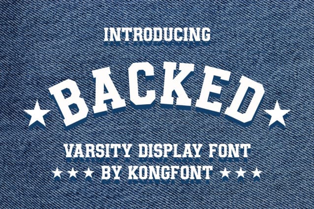 Backed Font – Modern Varsity Font is the best font applied to event titles that use a sports theme, such as basketball and baseball. This font can contribute to building a good impression on everyone who sees it. Backed Font – Modern Varsity font can be used on match shirts, merchandise, stickers, and other clothing item design. This font is a modern type of font that is easy to combine with various things.