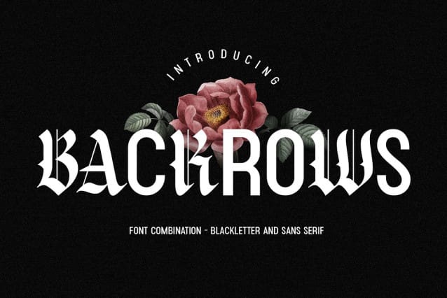 Backrows Font, a captivating blend of blackletter and sans serif fonts. This unique combination offers an elegant and modern aesthetic, allowing for versatile design possibilities. With additional alternate characters, you can mix and match to create stunning typography.