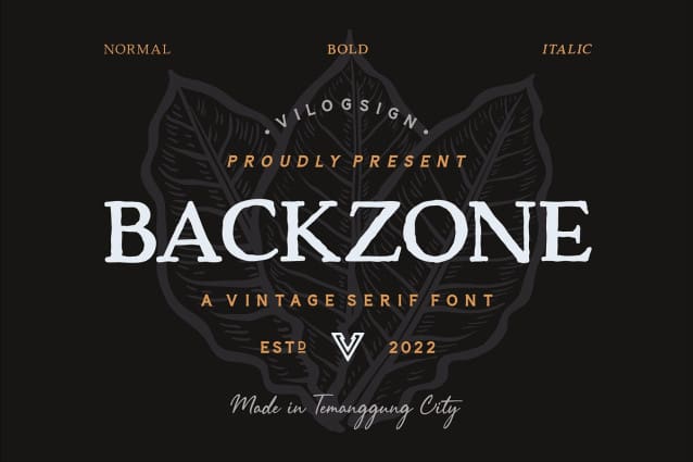 Backzone font is a Serif font which a touch of vintage look and feel. This type of font perfectly made to be applied especially in logo, Branding, and the other various formal forms such as invitations, labels, logos, magazines, books, greeting / wedding cards, packaging, fashion, make up, stationery, novels, labels or any type of advertising purpose. This font is very amazing with multilingual support and Vector logo template to complete your need.