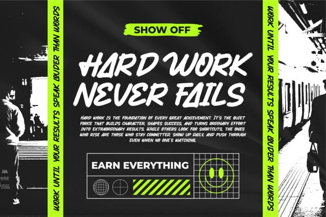 Introducing Badaz Rough, a freestyle brush font moving with energy. This font was created with digital brush strokes, carefully vectorized to keep the textures. Badaz Rough is a street font that delivers a loud message and strong.