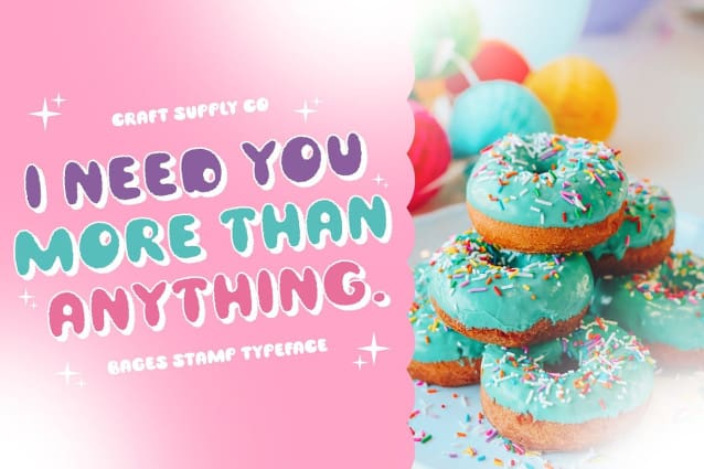 Bages Rough Font : Playful Bubble Display Font, inspiration from playful balloons, featuring bubbly shapes that add a whimsical touch to any design. Its rounded forms evoke a sense of fun and light-heartedness.