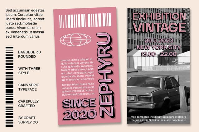 Perfect for Branding and Marketing Baguede Rounded 3D excels in branding, marketing materials, and UI design, where a fresh and energetic impression is desired. Its modern and playful vibe makes it a great choice for projects that need to convey both innovation and friendliness. Ideal for creating standout logos, compelling headlines, and engaging digital graphics, this font adds a touch of contemporary flair to any design.