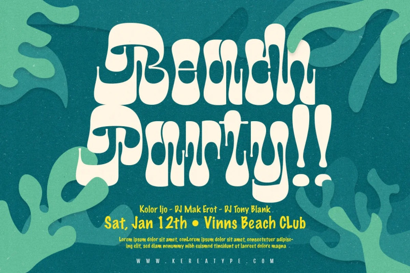 The organic feel of Bali Sunset evokes a psychedelic vibe that you can use to take your designs to a new level. The font is excellent for posters, flyers, apparel, quotes, greeting cards, product packaging, album covers, movies, and more.
