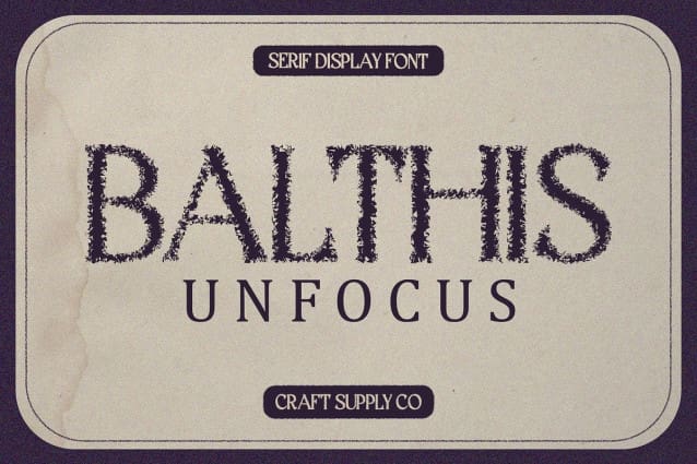 Balthis Unfocus Font: A Unique Display Typeface. Blurry Serif Elegance Balthis Unfocus presents a distinctive display font with a twist. Its serif characters are deliberately unfocused, adding a dreamy and ethereal quality to your designs.
