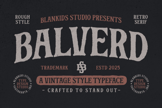 Balverd Font a vintage serif font is made for any professional project branding, such as logotype, watermarks, poster, branding, promotions, product packaging, etc. Every letter has a vintage style design. This font comes in Otf. and Ttf. files.