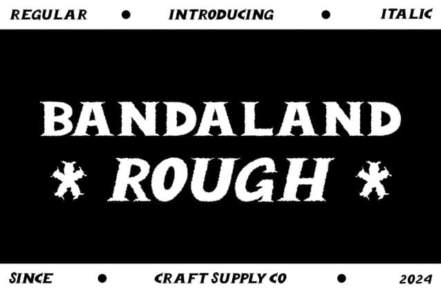 Bandaland Rough Font: Bold and Eye-Catching Display Font. Striking Serif Design Bandaland Rough features a striking serif design that commands attention with its bold presence. Each character is meticulously crafted to captivate the viewer’s gaze.