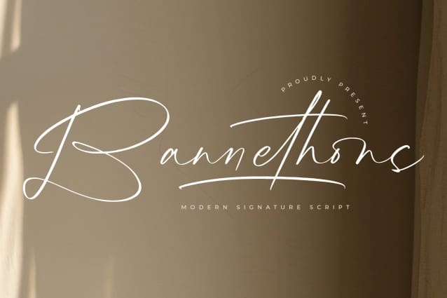 Bannethons Signature Font – Modern Signature Script , from Letterena, is a Luxury Script font, suitable for any projects such as: logos, branding projects, homeware designs, product packaging, mugs, quotes, posters, shopping bags, t-shirts, book covers, name card, invitation cards, greeting cards, label, photography, watermark, special events, and all your other luxury and beautiful projects that need a Luxury Script taste.