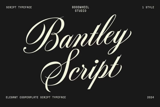 Bantley Script Font, inspired by Copperplate script calligraphy, this font offers elegant swashes, refined stroke endings, and contextual alternates for “n,” “m,” and “x.” Perfect for logos, headlines, branding, and more.