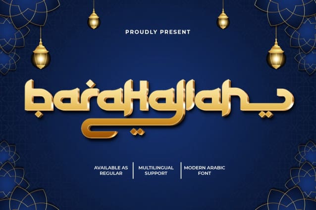 Barakallah Arabic Font is a modern Arabic Font that presents a unique and attractive decorative typographic appearance. This type of letter is a variation of decorative fonts that have the theme of Arabic shades. This nuance is presently completed with themes and ornaments that accompany him.