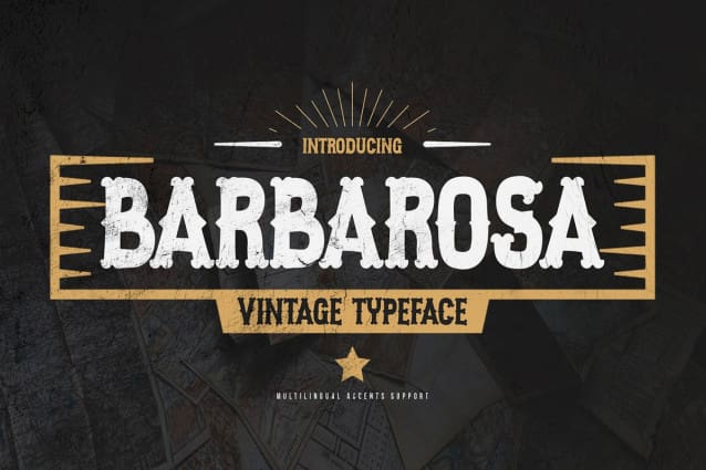 Barbarosa Vintage Font is Display Vintage Serif can make your logotype become more interesting. Best Vintage font multilingual support. inspired by the decorative arts and architecture movement. BARBAROSA fonts is perfect for your project and allows you to create designs, headlines, posters, logos, badges, and many more that are beautiful. It is also best used for posts, logos, posters, certificates, labels and more.